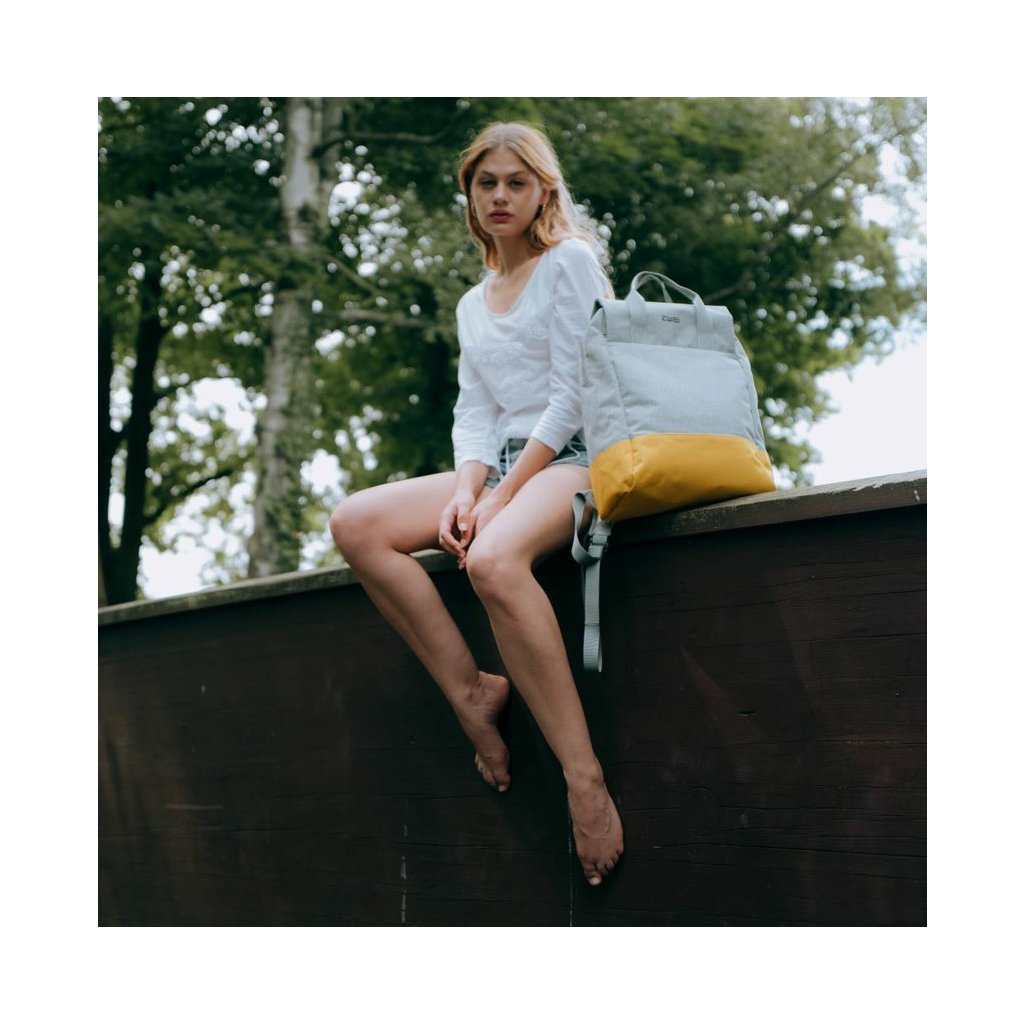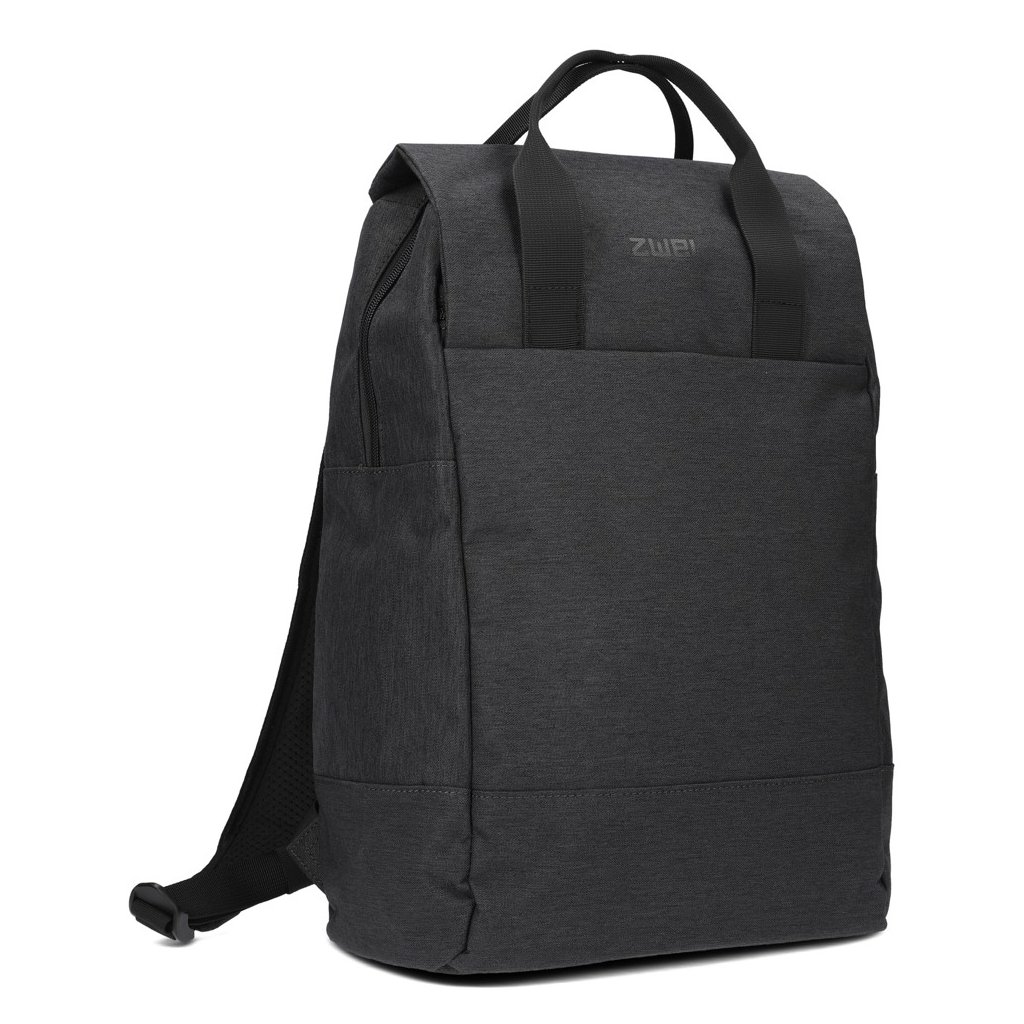 Denní batoh Zwei BE160 je ideální pro každodenní univerzitní nebo kancelářský život. Nabízí dostatek prostoru pro optimální a bezpečné uložení notebooku, dokumentů a všeho důležitého. Široký zip po celém obvodu usnadňuje přístup. Moderní a ležérní vzhled batohu je nadčasový a univerzálně kombinovatelný. Dokonale se tak přizpůsobí individuálnímu městskému životnímu stylu. Batoh má dvě krátká ucha do ruky a dva nastavitelné a vypolstrované popruhy na záda. Ucha do ruky se dají sepnout pomocí druku. Záda batohu jsou vyztužená a vyměkčená, díky čemuž se batoh dobře nosí a dobře drží tvar. Horní část batohu je překlopená dozadu. Klopna drží na místě s pomocí magnetů pod materiálem. Na boku batohu je malá kapsa s kolmým zipem. Uvnitř kapsy je řemínek s karabinkou na klíče. Vpředu pod klopnou je velká kapsa na zip. Uvnitř kapsy je vyměkčená kapsička na mobil a pružné úchytky na propisky. Hlavní prostor batohu má zapínání na zip. Uvnitř batohu je vypolstrovaná kapsa na notebook o rozměrech max. 33 x 25,5 cm a dále kapsa na iPad. Kapsa na notebook se zapíná na suchý zip. Uvnitř batohu jsou další dvě otevřené kapsy a kapsa na zip. Kovové komponenty mají černou barvu. Batoh je perfektní volbou pro nošení do města - má ideální velikost, není příliš široký a dobře sedí na zádech.