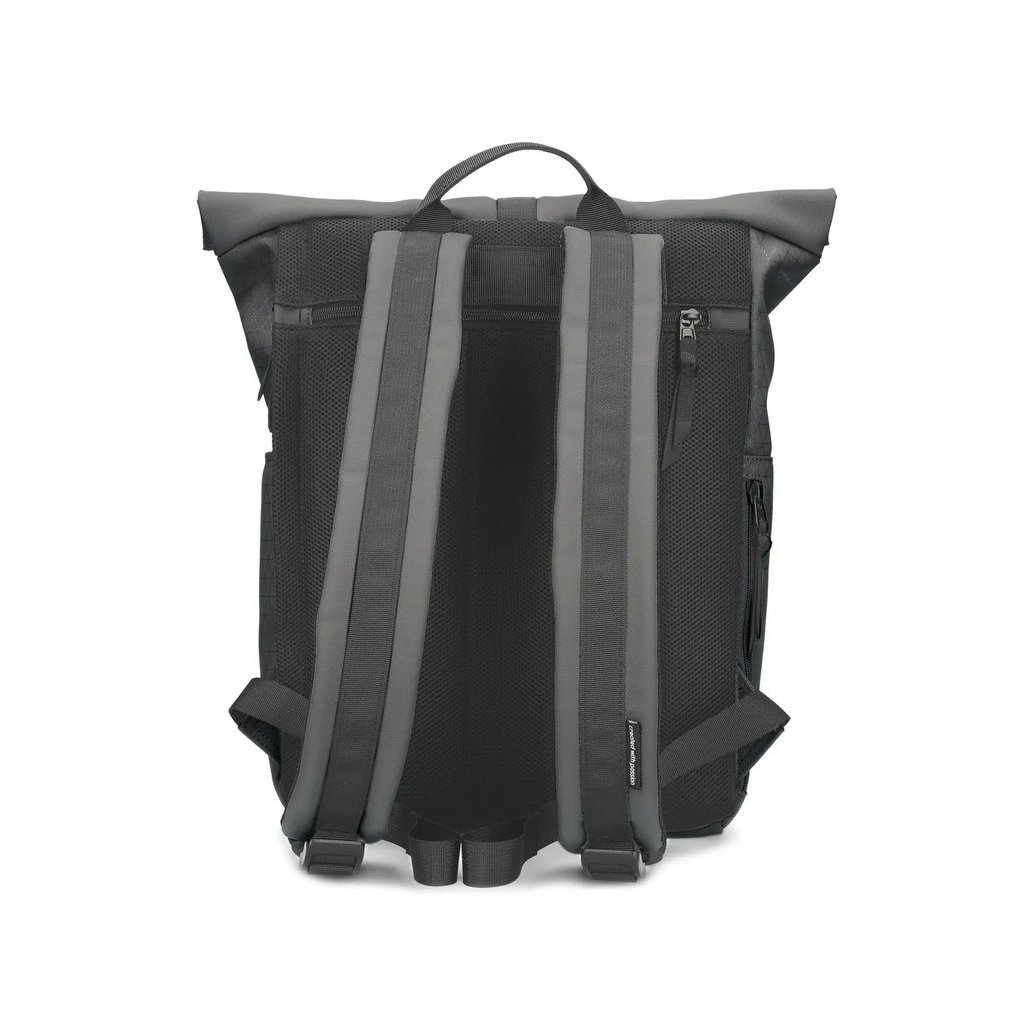 Záda batohu jsou vyměkčená a zároveň zpevněná, takže batoh drží tvar i při plném zatížení. Pohodlí při nošení zajišťují nastavitelné polstrované ramenní popruhy a pevné horní ucho umožňuje snadné přenášení v ruce. Horní část lze sepnout magnety skrytými v materiálu, srolovat a upevnit popruhem s kovovou přezkou. Do hlavního prostoru se dostanete také praktickým bočním zipem.
