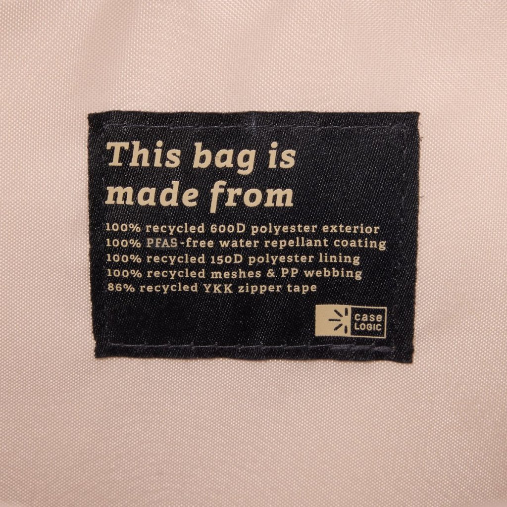 - Vyrobeno ze 100% recyklovaného polyesteru 600D a 86% recyklované tkaniny zipu YKK