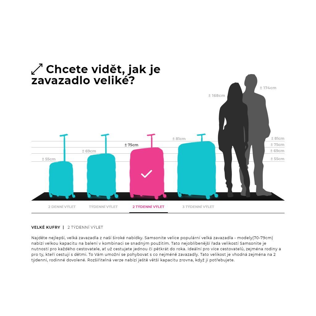| Rozměry | 75 x 54 x 29 cm (včetně rukojetí, kol, spodního kluzáku, postranních kapes a jiných vnějších dílů) |