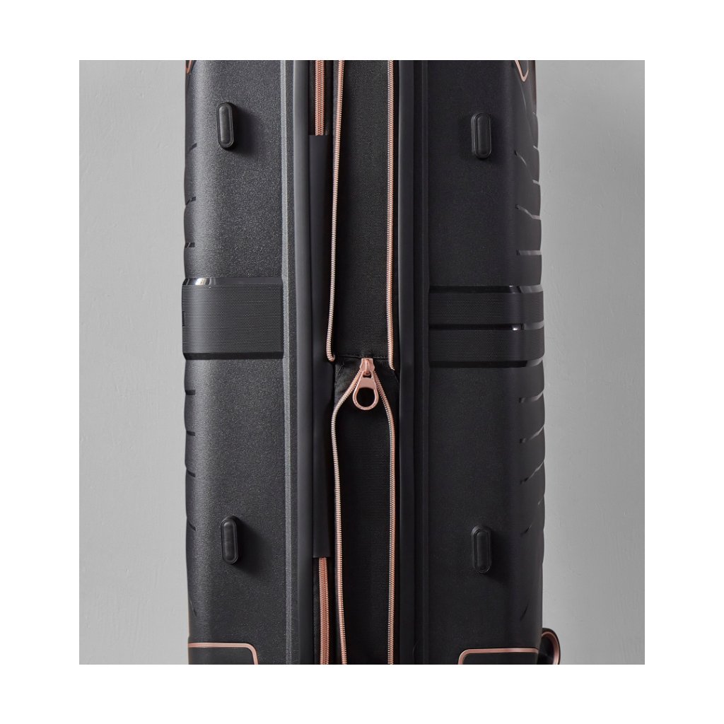 ROCK Astrid L je robustní a zároveň lehké zavazadlo z polypropylenu (PP) s odolným zipovým uzavíráním a TSA kódovým zámkem. Díky expandéru navýšíte kapacitu o +10–15 %, pojezd zajišťují 4 dvojitá kolečka 360° a přehledný interiér s přepážkou, kapsami a kompresními popruhy urychlí balení i orientaci během cesty.