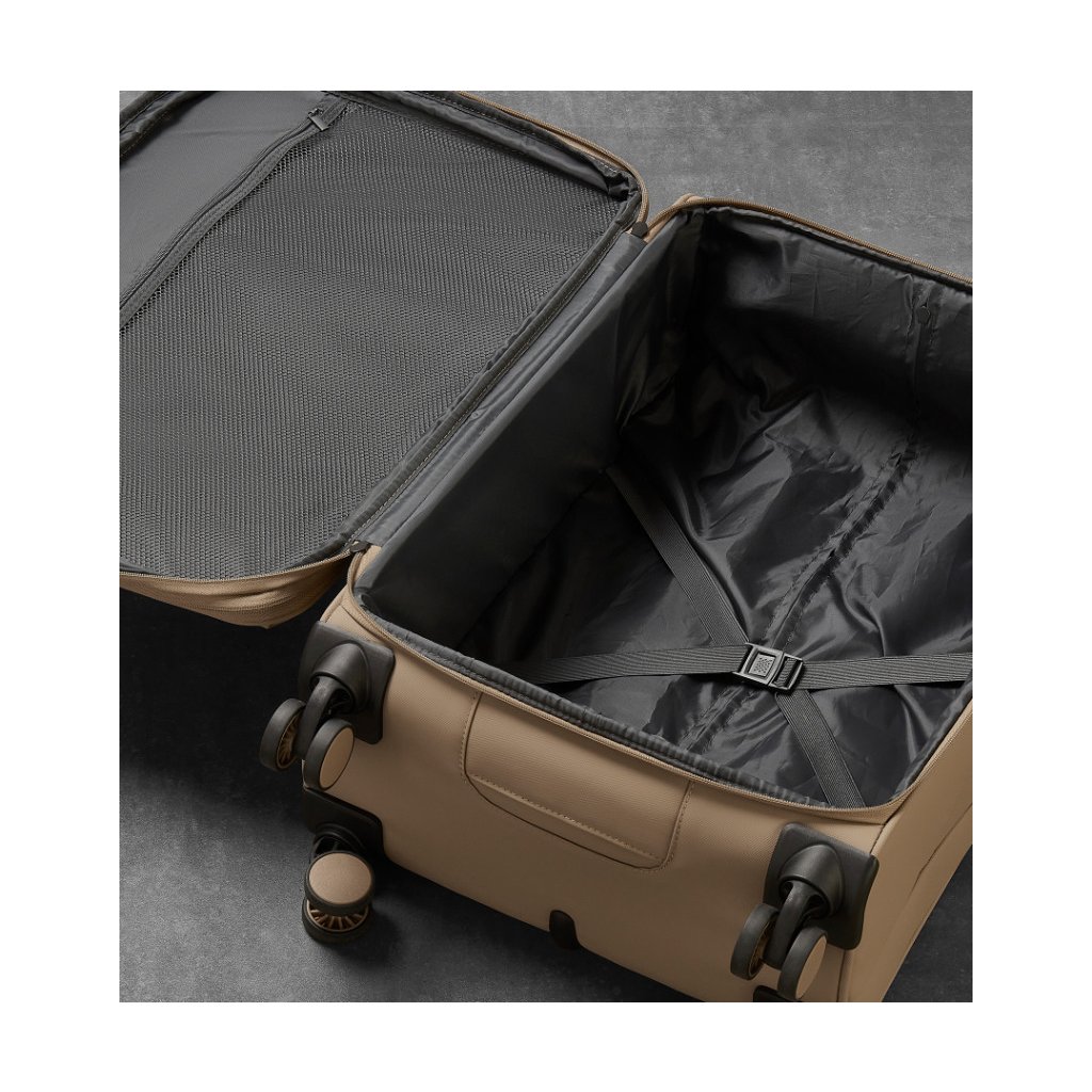 Kufr je vyroben z TPU polyesteru, který má oproti běžnému polyesteru výrazně vyšší odolnost proti oděru, roztržení i chemickému poškození. Praktický expandér umožňuje navýšit objem přibližně o 11–15 %, takže získáte další prostor přesně tehdy, kdy ho potřebujete.