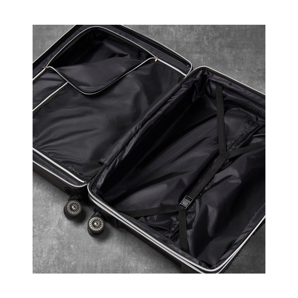 Praktický interiér s dělicí příčkou, kapsami a kompresními popruhy drží vše na svém místě. Kdykoli potřebujete přidat pár věcí navíc, stačí rozepnout expandér a navýšit kapacitu o 15–20 %. O hladký přesun se postarají 4 dvojitá kolečka otočná o 360°.