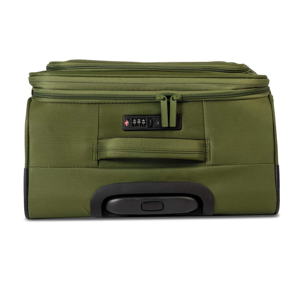 Kufr je vyroben z pevného 400D polyesteru, který je odolný proti mechanickému opotřebení a běžným nárazům při manipulaci. Konstrukci doplňuje stabilní spodní ochrana, hliníkové výsuvné madlo a praktická horní i boční madla pro snadné přenášení.