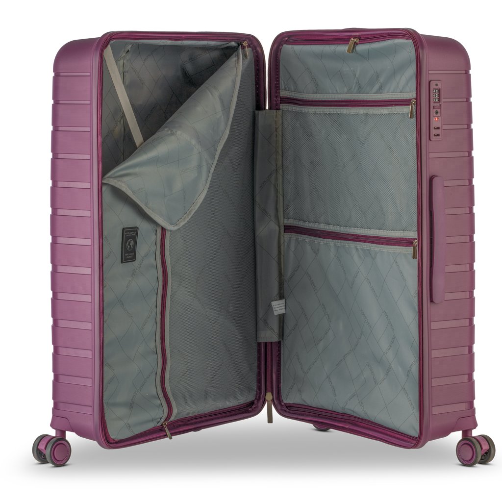 Tento model je vyroben z pevného polypropylenu, který vyniká vysokou odolností vůči nárazům, vlhkosti i běžnému opotřebení. Díky čtyřem dvojitým kolečkům s hladkým chodem a 360° rotací je manipulace s kufrem naprosto bezproblémová, ať už cestujete po letišti nebo po městských ulicích.