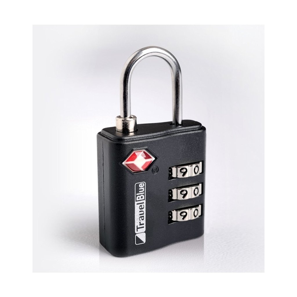 Bezpečnostní TSA kódový zámek TravelBlue na zipová zavazadla – umožňuje letištním kontrolorům, kteří mají speciální „MASTER“ klíč od všech TSA zámků, vaše zavazadlo v případě nejasností otevřít a zase uzavřít bez toho, aniž by tento zámek zničili.